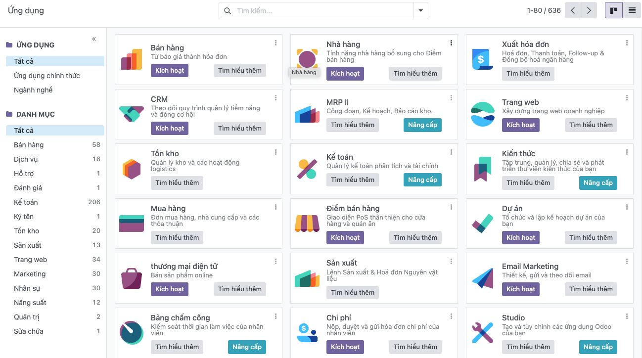 Giải pháp Odoo đã hoàn chỉnh với nhiều tính năng chuyên dụng cho Việt Nam bao gồm Kế toán Việt Nam, Nhân sự Việt Nam