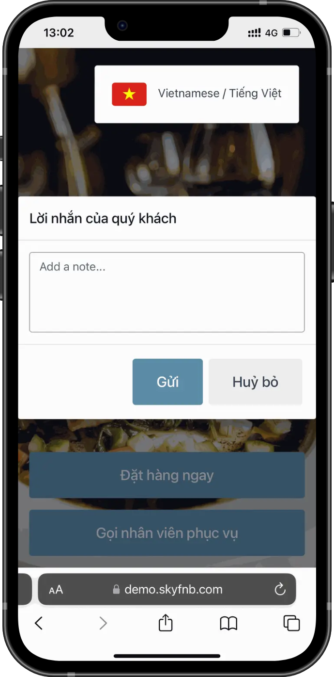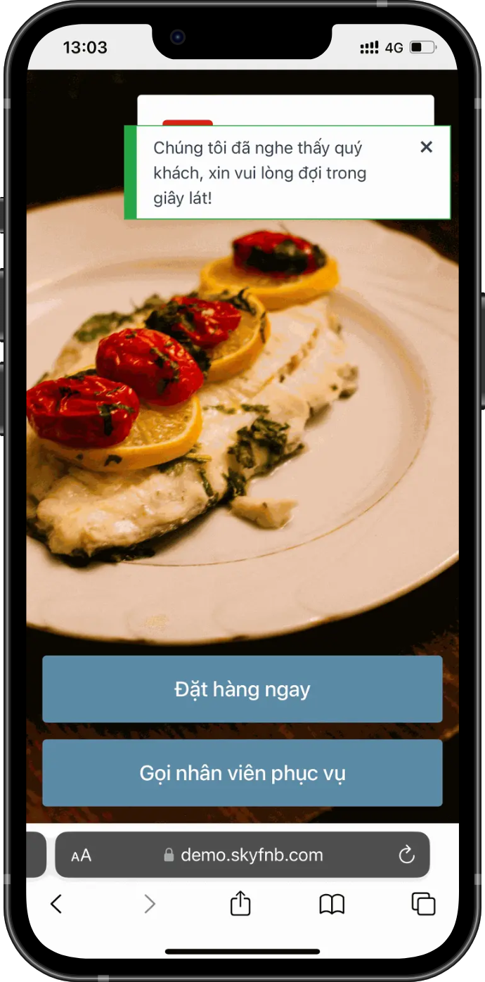 Từ màn hình Menu điện tử Khách hàng có thể giao tiếp với nhân viên dễ dàng