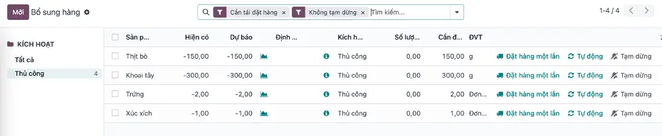 Quản lý tồn kho nguyên vật liệu, dự báo tồn kho, tự động đề xuất mua hàng