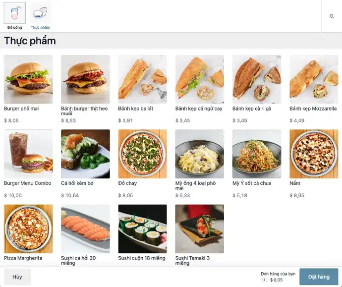 Cho phép Khách hàng tự chọn món để đặt hàng và tự thanh toán đơn hàng hoặc thanh toán tại quầy. Tương tự như 1 số quán fastfood và là 1 mô hình khá phổ biến trên thế giới.
