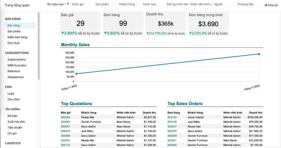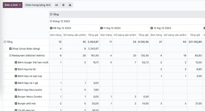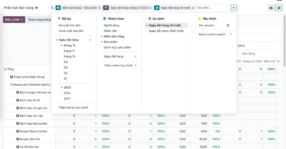 Báo cáo phân tích động theo đồ thị, bảng pivot. Người dùng có thể lọc, nhóm theo và phân tích theo nhiều chiều thông tin khác nhau, có thể so sánh giữa các khoảng thời gian, so sánh với cùng kỳ năm trước