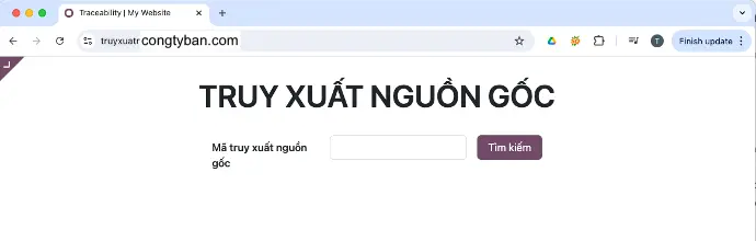 Portal truy xuất nguồn gốc này cho phép tìm kiếm bất cứ mã gì nếu cần và hiển thị thông tin của từng mã sản phẩm